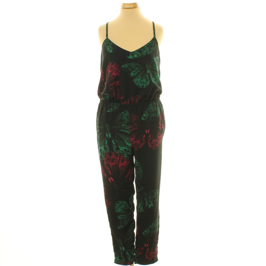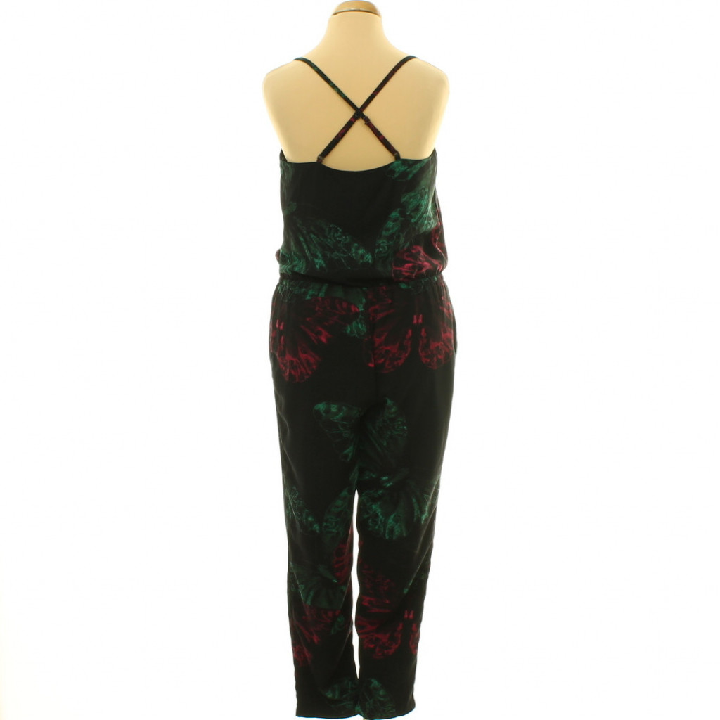 Felsőrészén béléses, gumis derekú, zsebes, állítható keresztpántos overál, rejtett cipzárral.