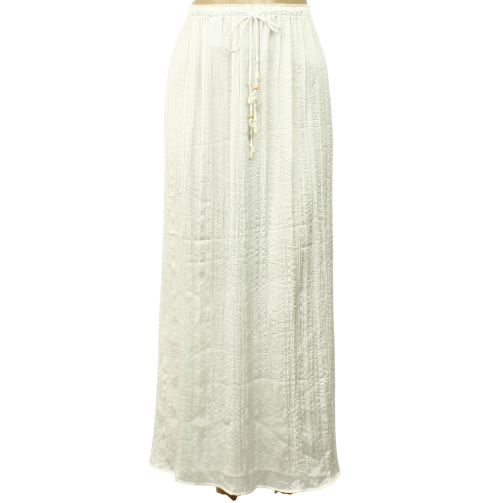 Oldalán hasítékos, gumis derekú, kagylódíszes szoknya.