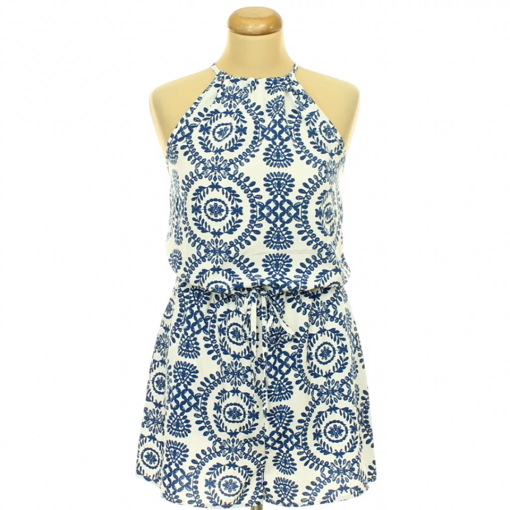 Shein kék-fehér mintás overál