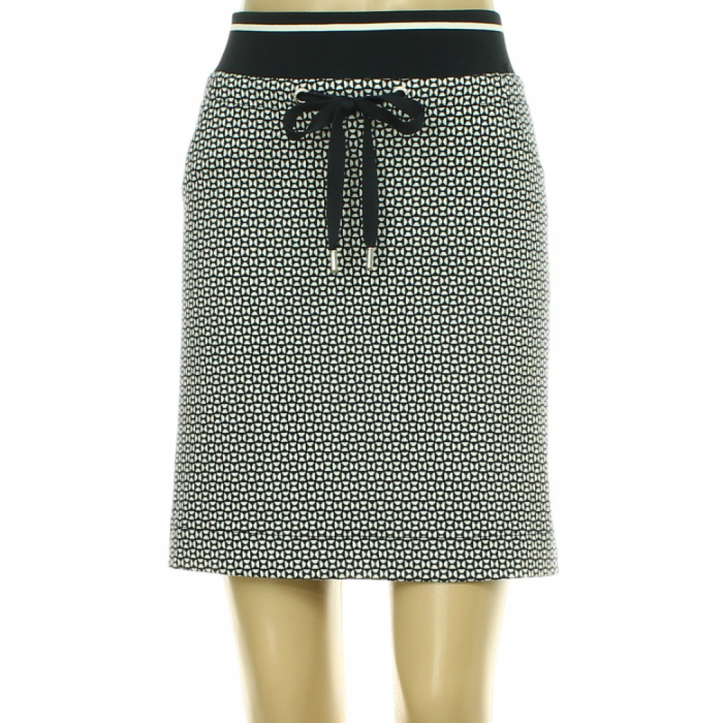 Gumis, kőtővel szabályozható derekú, zsebes, rugalmas anyagú szoknya.