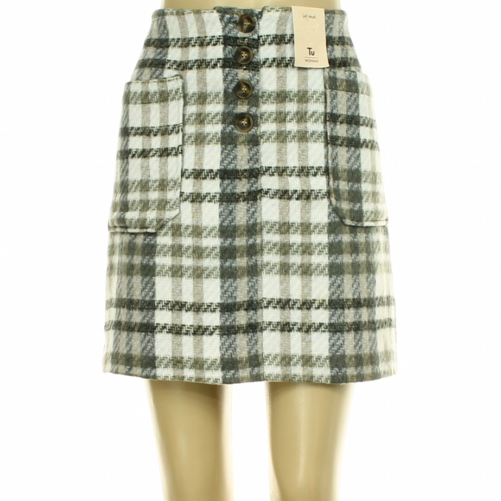 TU kockás szőrmehatású szövetszoknya